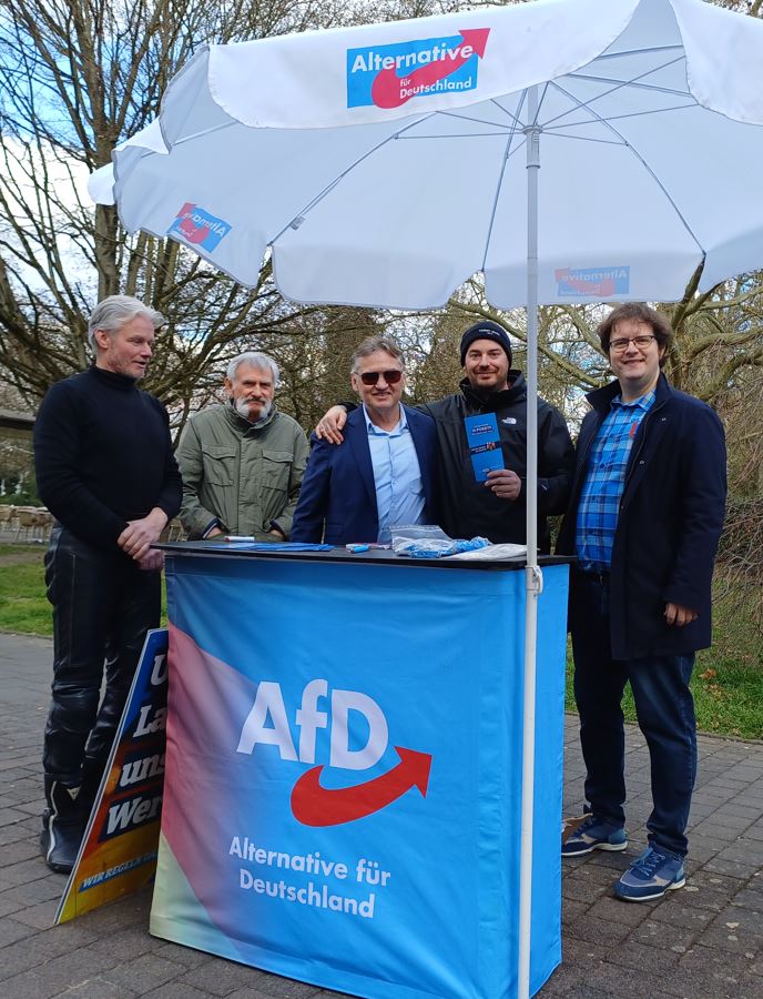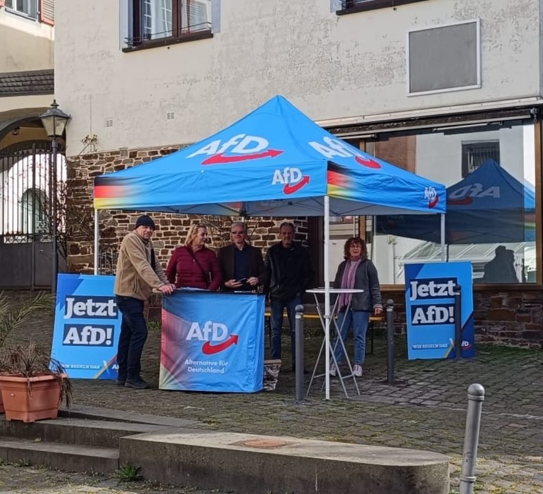 Mit gemischten Gefühlen blicken wir auf unseren Infostand heute in Kruft zurück. Schon beim Aufbau erwartete uns eine linke Gegendemo